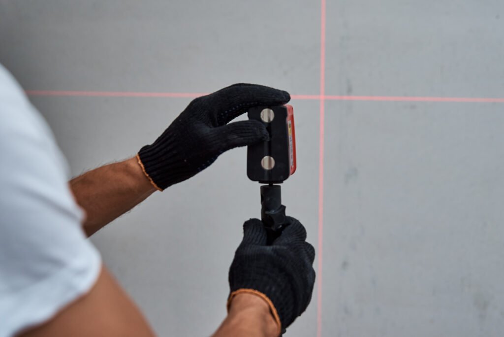 - Laser Alignment: Ensures floors, walls, and fixtures are perfectly straight.